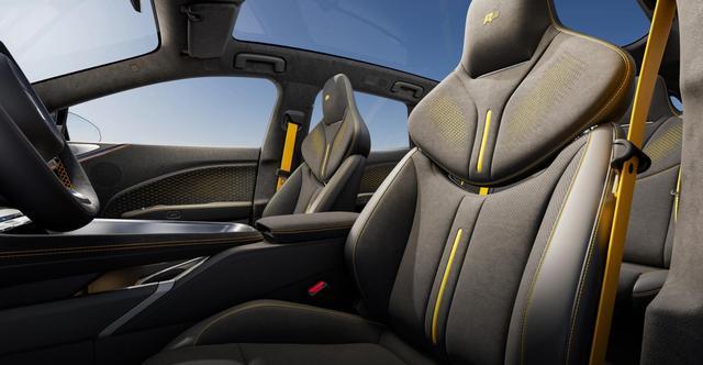 内饰方面,新车核心亮点是采用极夜黑外观搭配竞速黄内饰配色,撞色设计极具视觉张力,将运动氛围拉满。座舱大面积采用翻毛皮材质与黄色缝线交织,质感细腻出众,同时配备专属配置,包括带有主动侧翼支撑的一体式麂皮绒性能座椅,过弯时可自动包裹身体,提供出色的支撑性。智能配置上,搭载极氪最新一代智能座舱系统,配备35.5英寸AR-HUD、15.4英寸中控屏与13.02英寸仪表组成的智能交互矩阵,搭载英伟达DRIVE Thor-U智驾芯片,可实现全场景领航辅助、130km/h AEB等高阶智驾功能。
